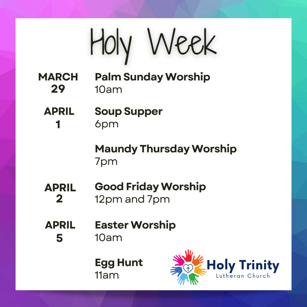 Holy Trinity Lutheran Church is a congregation of the Evangelical Lutheran Church in America (ELCA), part of the Southeastern Pennsylvania Synod of the ELCA (SEPA) and a Reconciling in Christ Congregation.